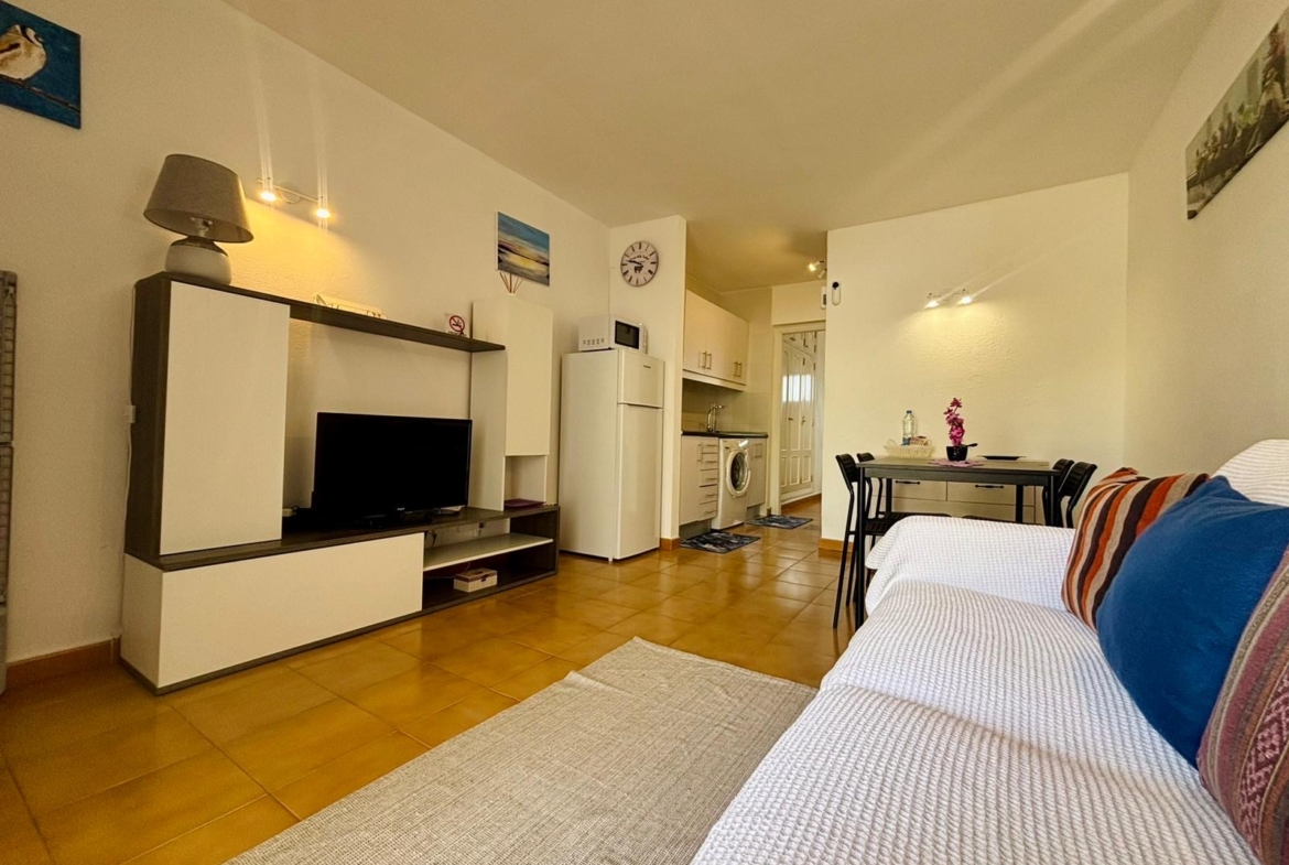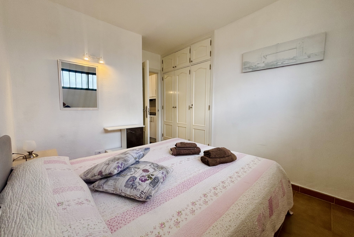 Residents benefit from a communal swimming pool, landscaped gardens, and a sunny, tranquil setting. Conveniently located close to the coast, shops, and restaurants, this apartment is perfectly suited as a permanent residence, holiday home, or long-term investment.
