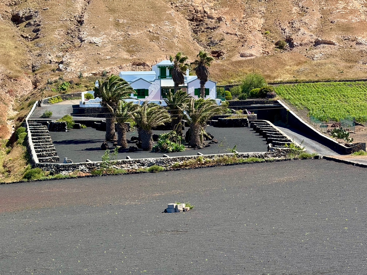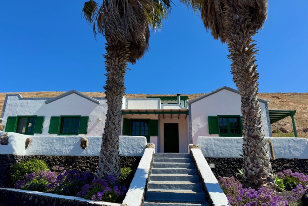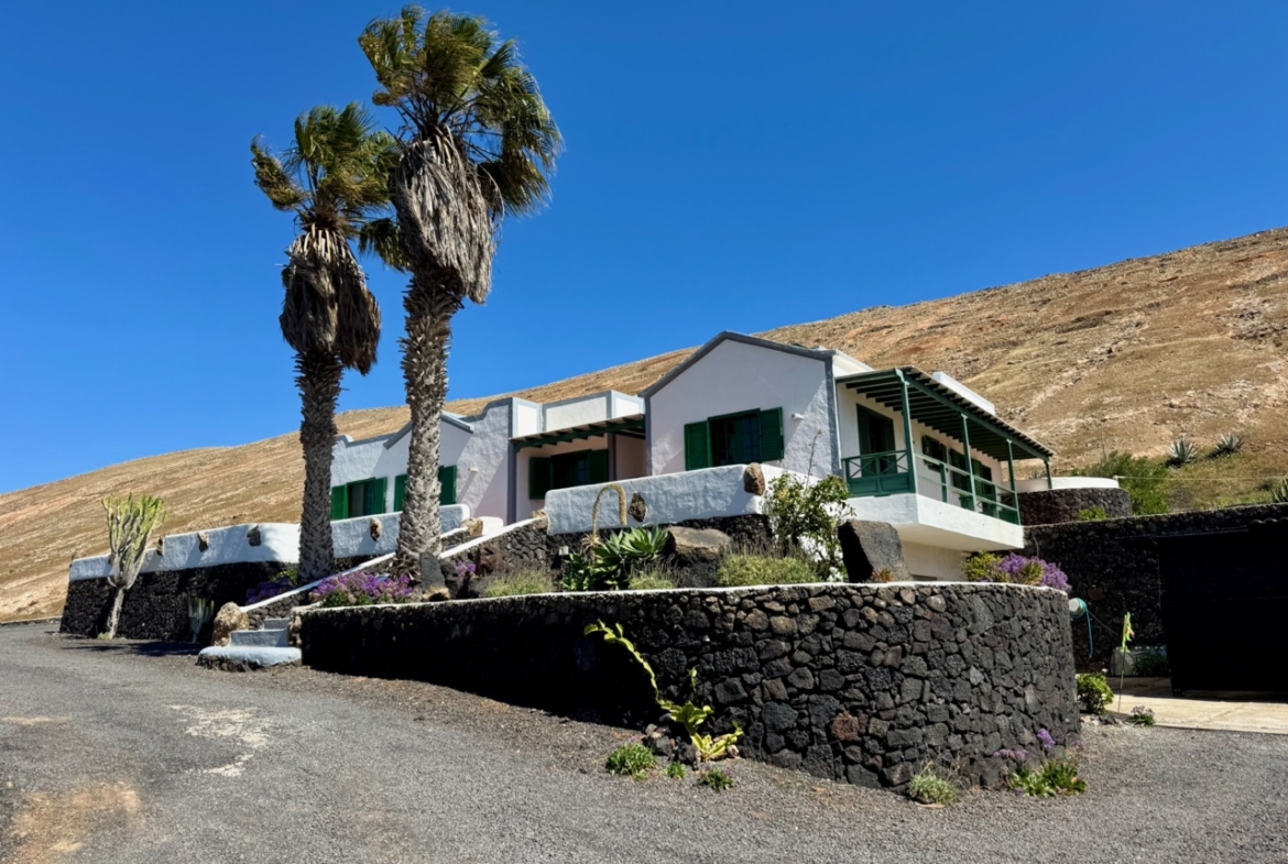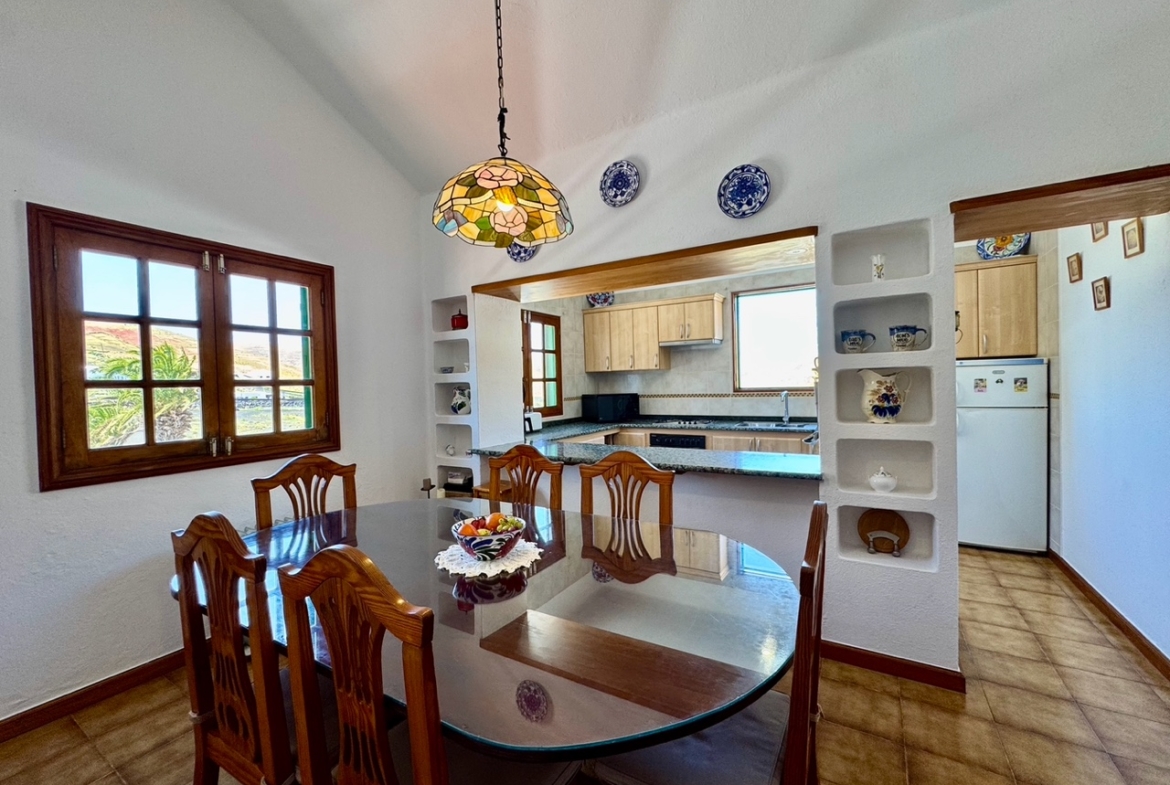 To the left side of the entrance sitting room is a large atrium space from which radiates the kitchen and dining room, a second large Manrique style family bathroom with a sunken bath and shower and 2 large double bedrooms. The rear door leads out to a separate utility room and the lava stone pathways surrounding the property, this is also where the exterior stairs to the upper level are found.