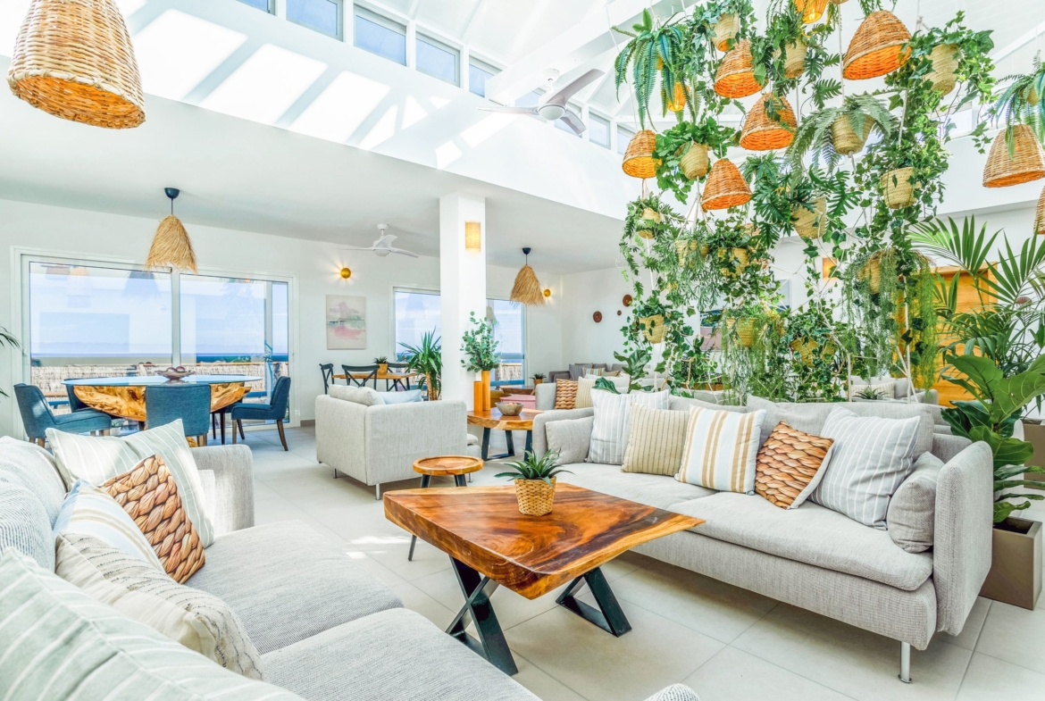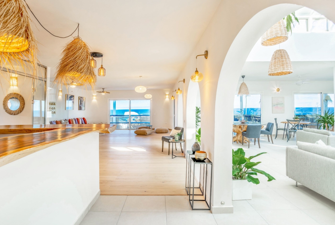 This unique villa is currently configured as five independent suites, each with its own en-suite bathroom and kitchenette. Four suites open directly onto poolside terraces, while the principal suite benefits from stunning panoramic ocean views.