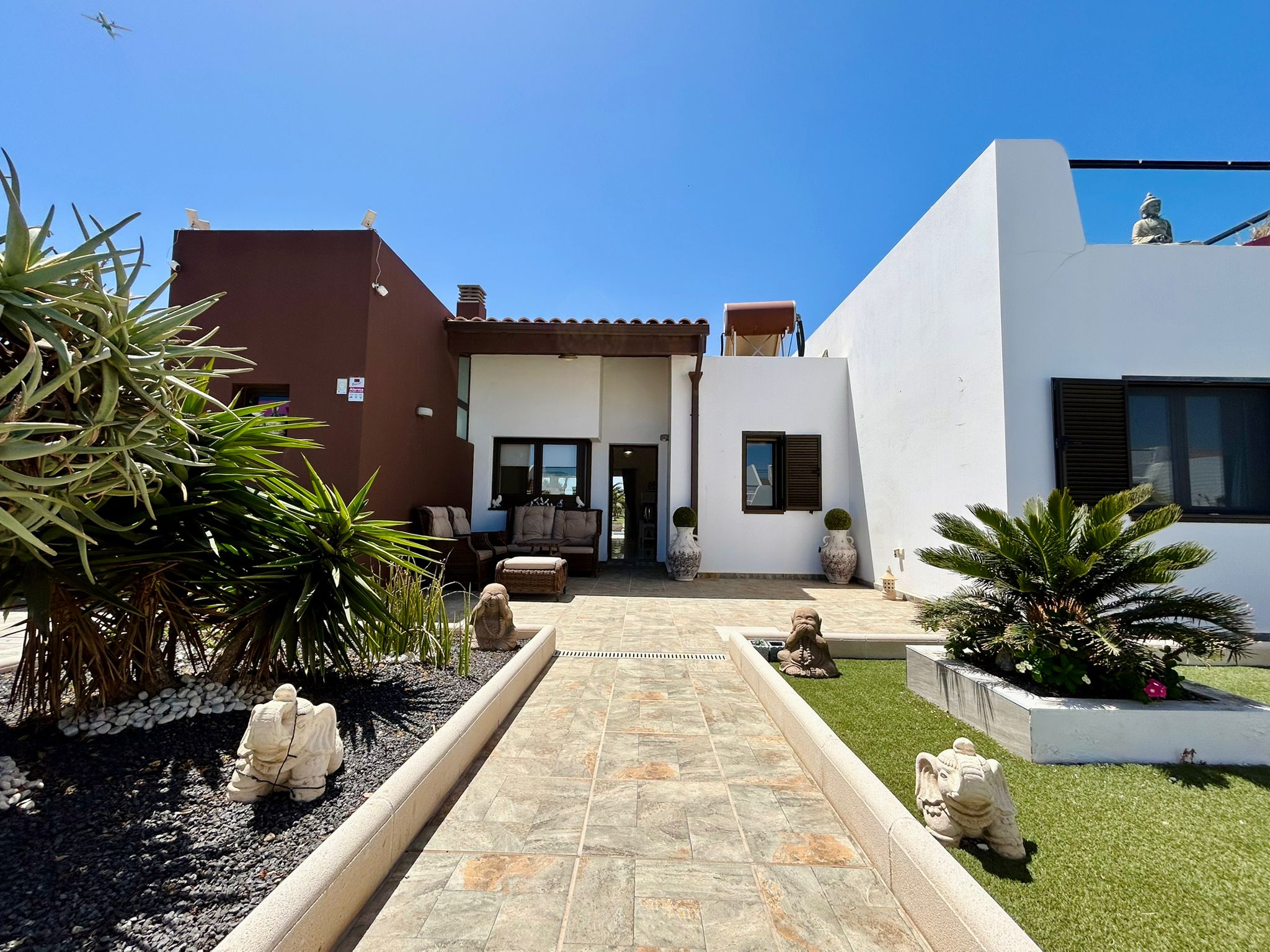 This stunning south facing villa enjoys a prime frontline position on the prestigious Fuerteventura Golf Course, combining elegant design with everyday comfort and functionality.