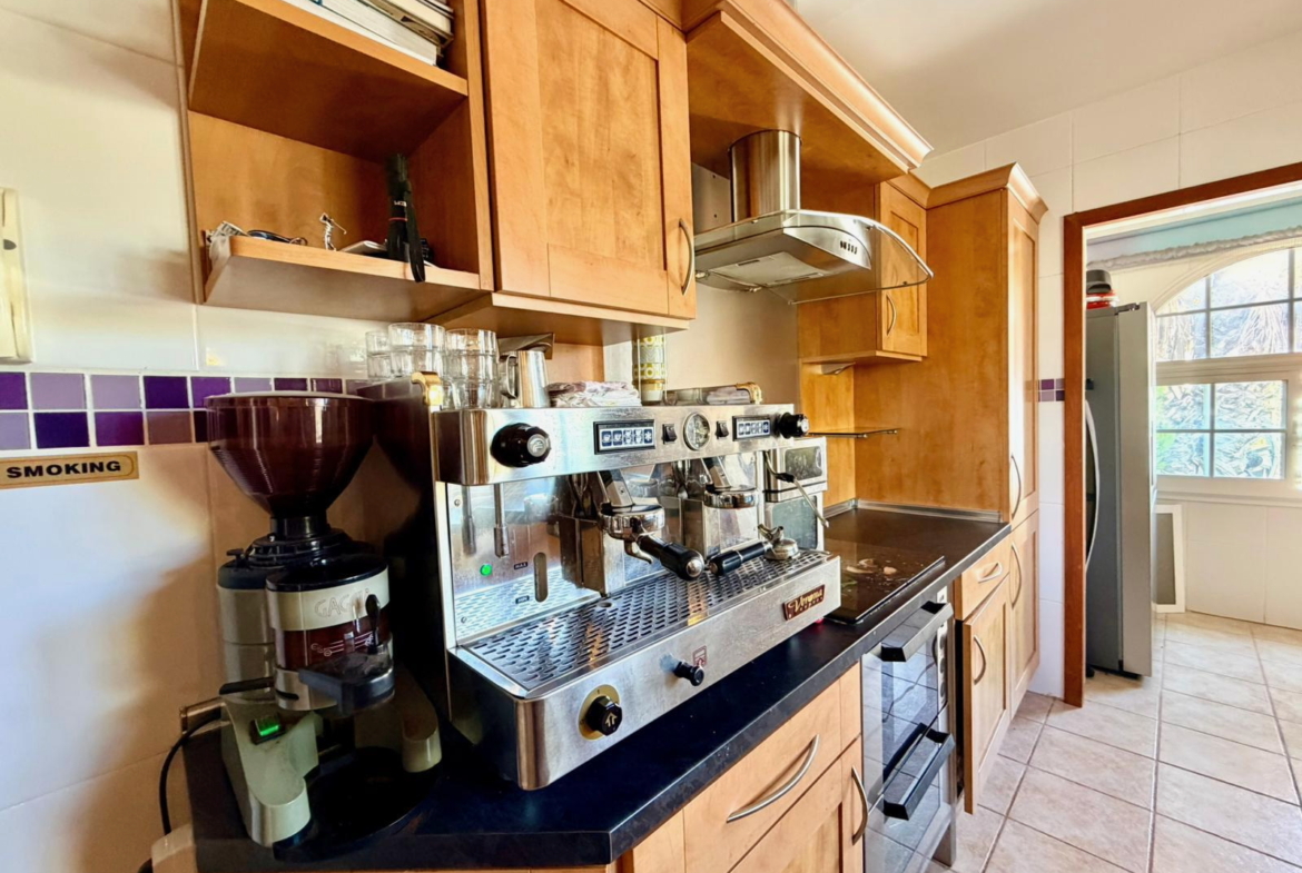 - Outdoor BBQ and industrial-style kitchen