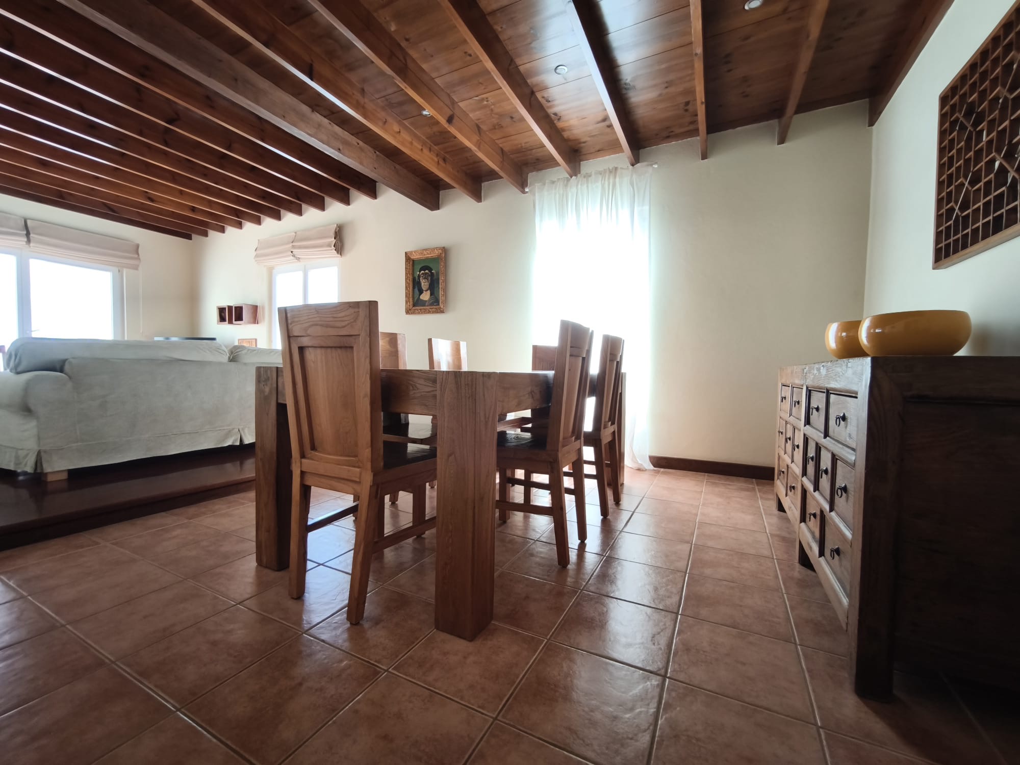 - Living–dining room with double-pitched wooden ceilings