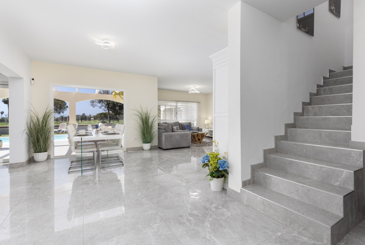 The expansive garden provides a peaceful retreat, ideal for soaking up the sun or hosting gatherings in a serene setting. With its modern design, high-quality finishes, and unbeatable location on a lush golf course, this villa offers an exceptional lifestyle opportunity.