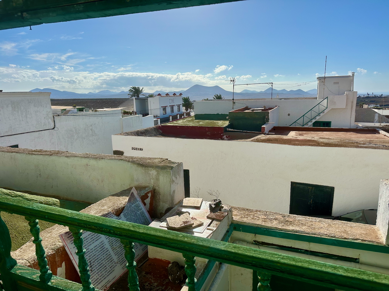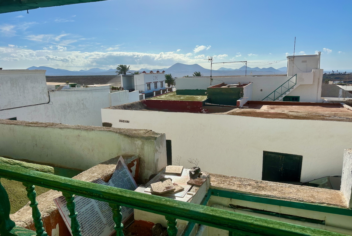 Upstairs, a large light-filled room opens onto a lovely balcony with sweeping views across the village and volcanic landscape beyond that perfectly reflects Lanzarote’s natural beauty.