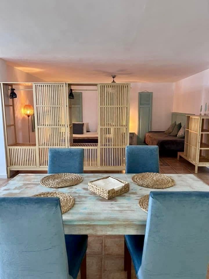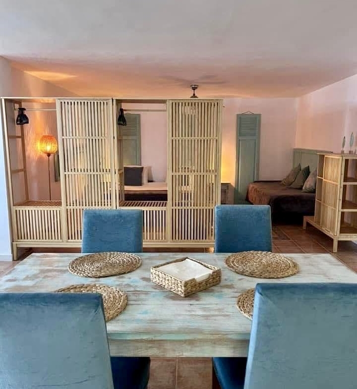 Beneath the main villa is a 90m2 independent open plan apartment with its own private access and terrace. Natural lighting is via windows located close to the ceiling. The open plan layout provides a spacious sitting area and kitchen, with an area simply sectioned off to provide the sleeping area. The apartment has its own bathroom.